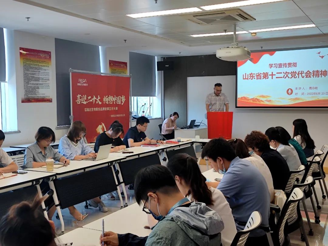 為深入學習宣傳貫徹省第十二次黨代會精神,全面落實省第十二次黨代會作出的決策部署,切實把廣大黨員干部職工的思想和行動統一到習近平總書記重要指示要求上來,6月23日下午,山東福瑞達生物股份有限公司(以下簡稱福瑞達生物股份)舉行“…...