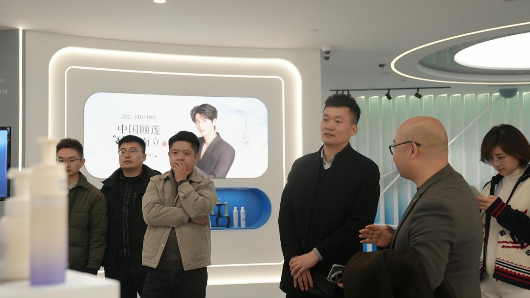 活動伊始,郁杰一行先后參觀了福瑞達世界美妝科技館與化妝品透明工廠。在科技館內,大家通過沉浸式展陳系統,詳細了解福瑞達30余年深耕玻尿酸領域的發展歷程,以及從醫藥研發到美妝應用的技術轉化成果。走進透明工廠,從萬級無菌配制車間到全自動化灌裝生產線,嚴苛的醫療器械級生產標準讓參觀團對福瑞達“妝藥同源”的核心優勢有了直觀認知。