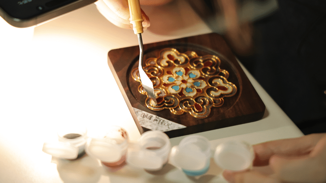 創作環節隨即開啟,職工們沉浸于掐絲琺瑯的精細制作中。借助活動預備的材料包,大家專注地為圖案填料上色,一件件獨具個人風格的作品初見雛形。現場交流熱烈,洋溢著對成品的期待與對活動組織的贊許。