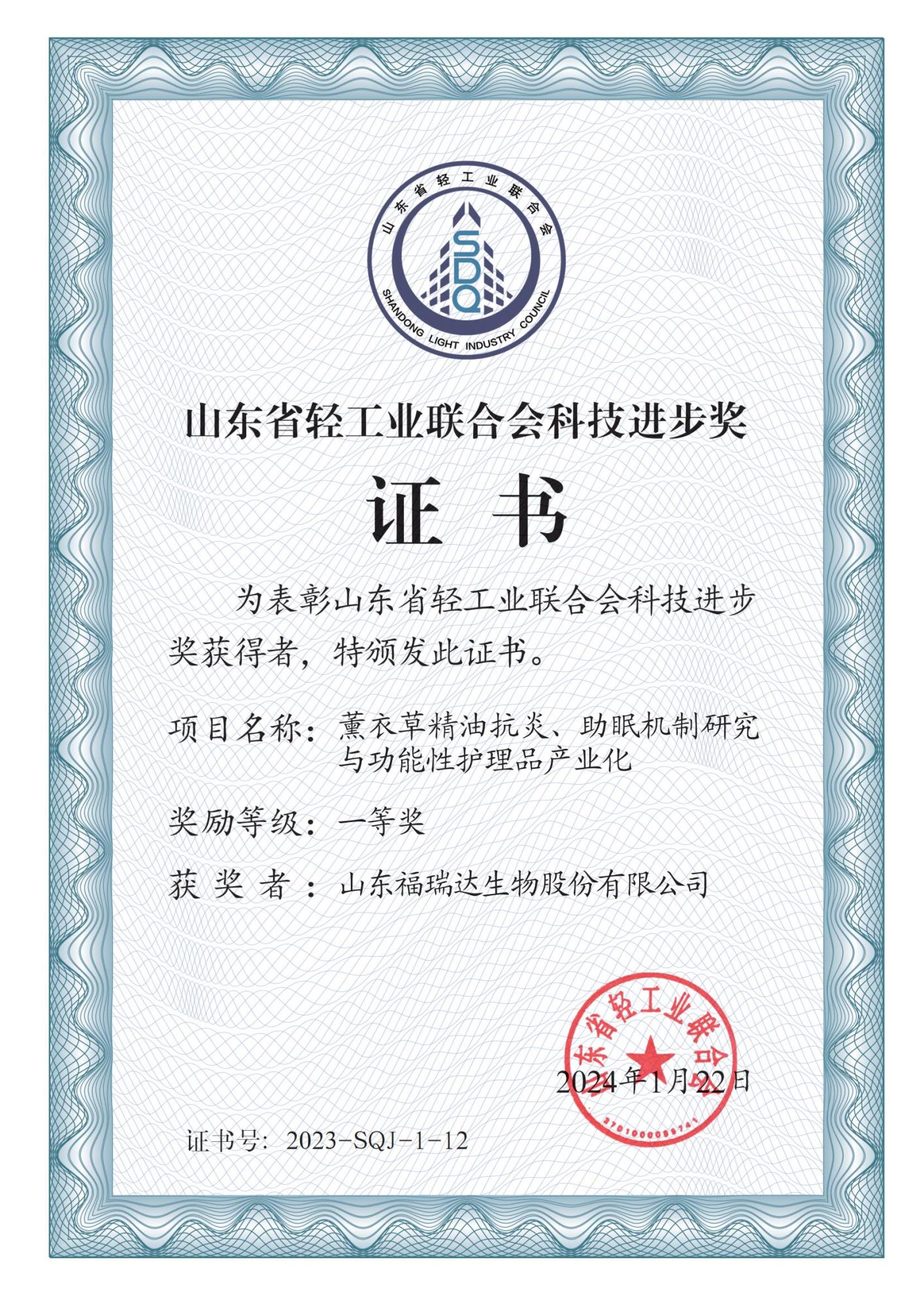 山東輕工業科技進步獎